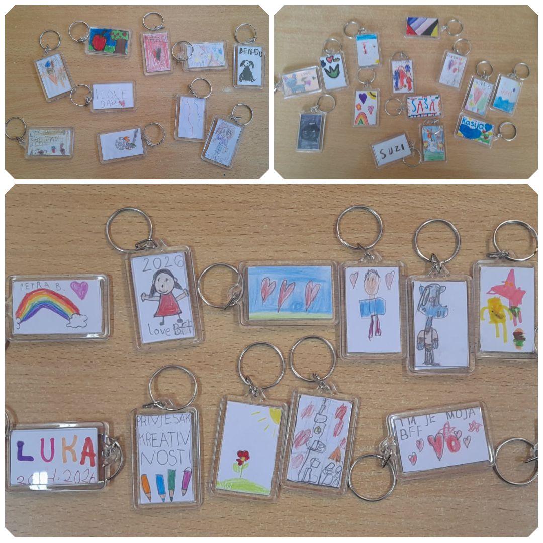 Učenici prvih razreda pravili su svoje personalizirane privjeske te su sami crtali, pisali i ukrašavali privjesak po vlastitoj želji. Nakon toga privjesci su završili kao ukras na torbi, pernici i na ključevima.