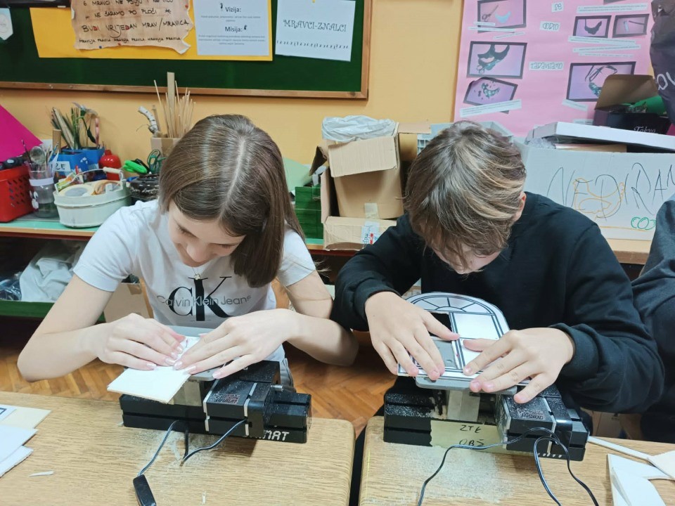 Naš Mravinjak 9. prosinca 2025. posjetili su učenici Posebnih odjela i održali radionicu modelarstva na Unimat strojevima. Vanesa i Leon odlično su se snašli u ulozi mentora i vrijedno su u pratnji učitelja Josipa Blekića i mentora Mravca Patrika podučavali nove članove preciznom rezanju na pilicama. Radionica je bila jedna od aktivnosti projekta Posebnih odjela “Nauči me, naučiti ću te”. Naši članovi bili su oduševljeni radionicom, smatraju da su puno naučili i pohvalili su svoje mentore.